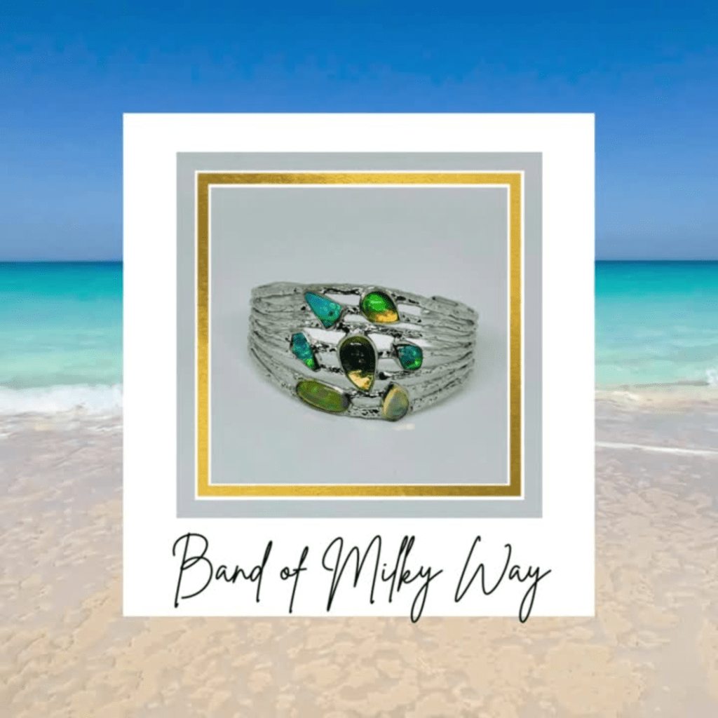 Introducing the Band of Milky Way—a celestial silver bracelet adorned with scattered opal stars, each one a piece of the universe’s magic.
